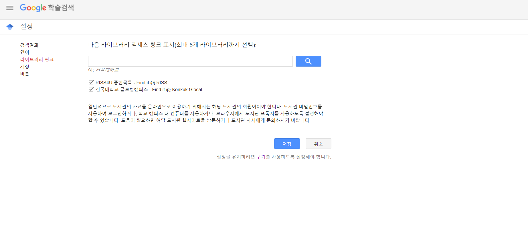 구글 스칼라 대학교 설정을 빠르게 하실 수 있게 됩니다.