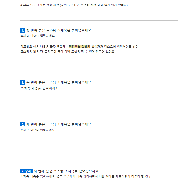 2.  글의 뼈대 미리 만들어 두기 + 서식 저장하기