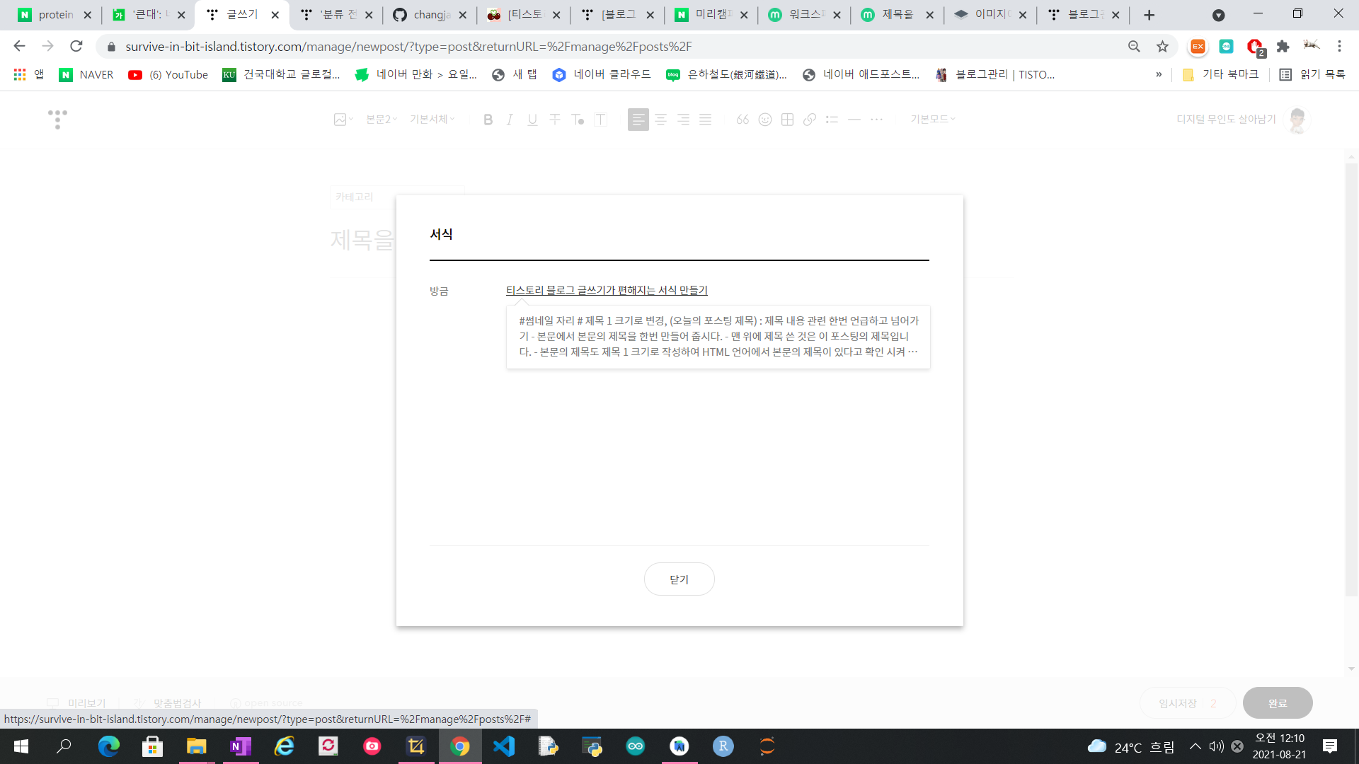 내가 정해뒀던 서식에 맞게 빠르게 포스팅을 하면 됩니다.