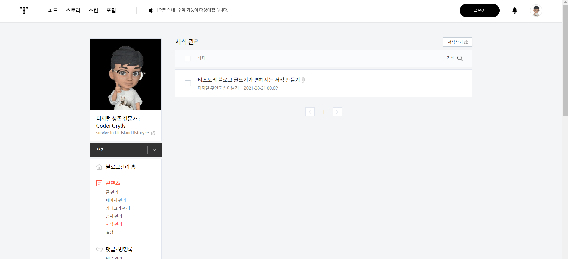 티스토리 서식 이용하여 블로그 글쓰기를 하게 될 것 입니다.
