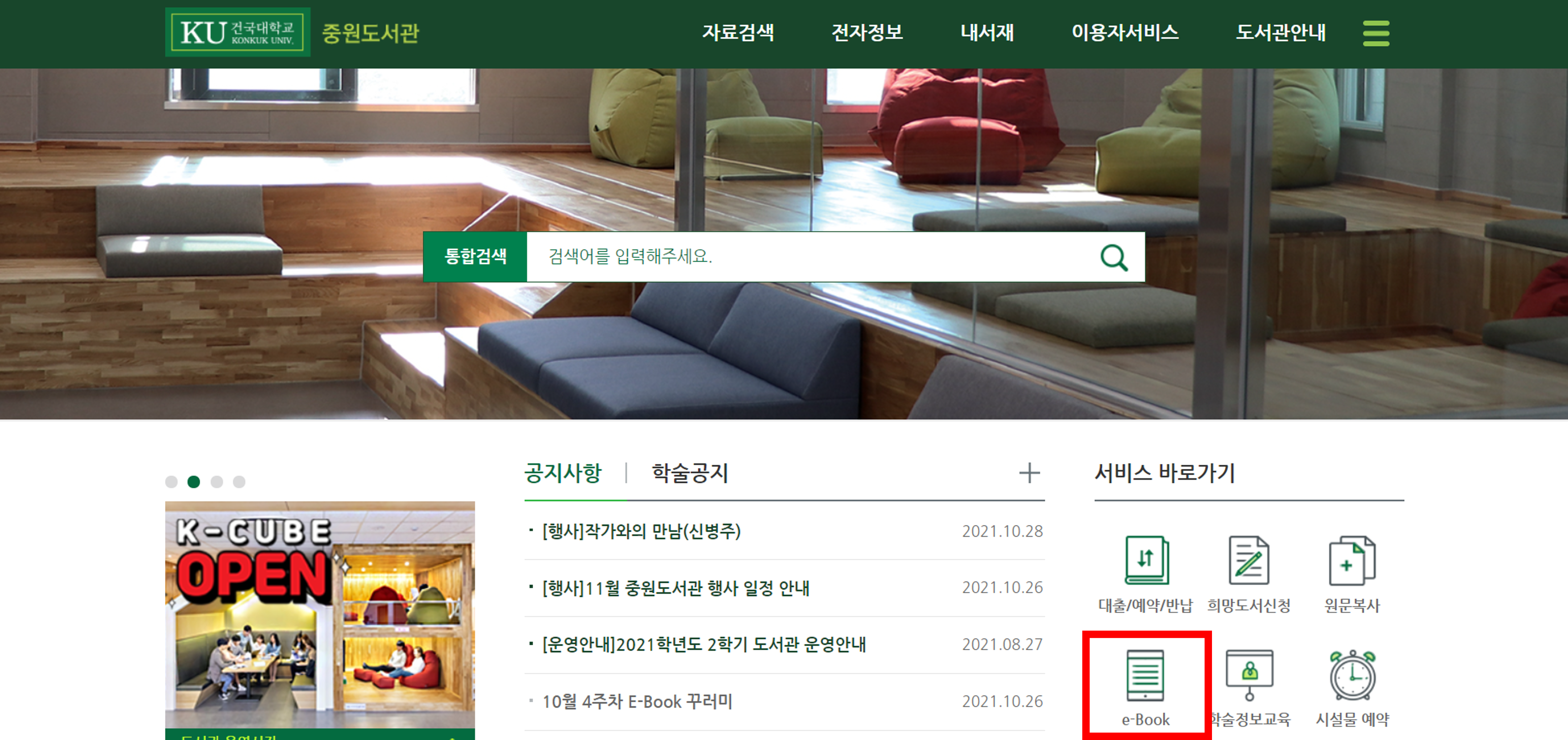 건국대학교에서 구매한 전자책이면 검색창 목록에 검색이 될 거예요
